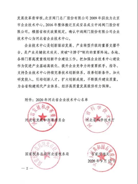 河北省發(fā)展和改革委員會(huì)、河北省科學(xué)技術(shù)廳、國(guó)家稅務(wù)總局河北省稅務(wù)局、石家莊海關(guān)四部門(mén)發(fā)布2020年河北省企業(yè)技術(shù)中心認(rèn)定名單的通知,常宏被認(rèn)定為河北省企業(yè)技術(shù)中心。
