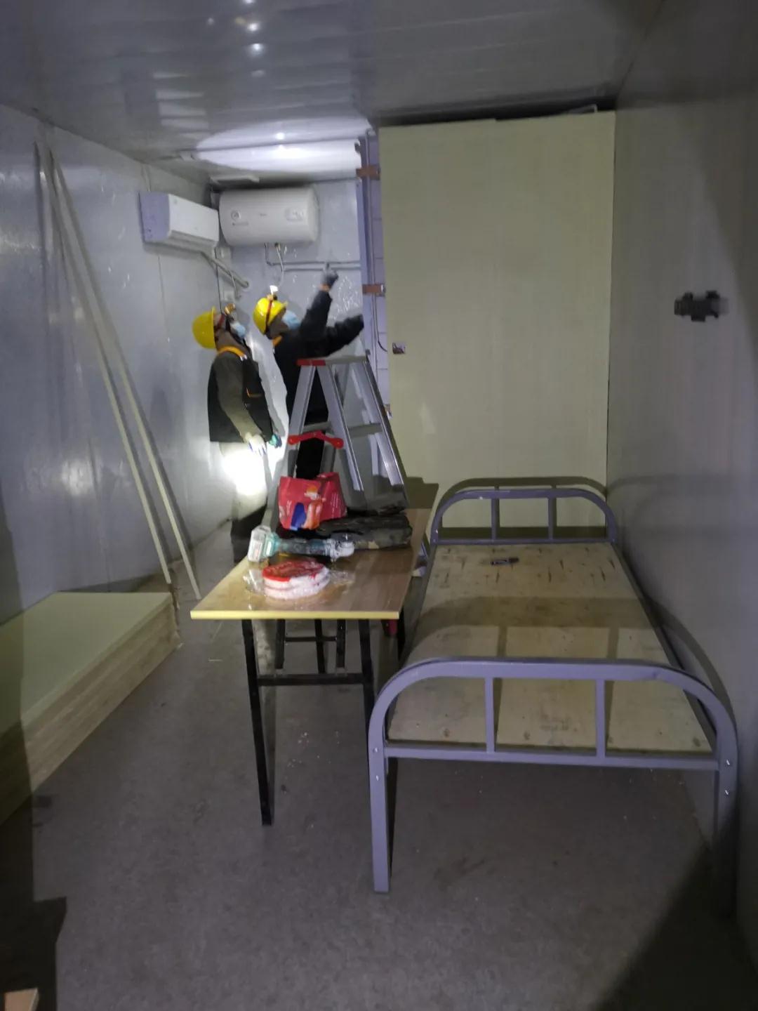 接到指令,馬上參建。19日晚,常宏第一批六名工人進(jìn)入隔離區(qū)施工現(xiàn)場(chǎng),并迅速連夜投入工作,為隔離間的衛(wèi)生間外側(cè)安裝墻板,直至凌晨。短暫休整后,于20日一早再次投入施工中,仍有更多常宏工人將在辦理完成社區(qū)/村/鎮(zhèn)的出入手續(xù)后陸續(xù)加入到現(xiàn)場(chǎng)。