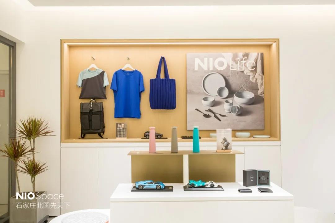 嵌入式的收納家具,使整個空間輕盈不負(fù)擔(dān);小小的一段拉簾,將展廳和會議室(平時(shí)可做辦公室)分開,加上灰色地毯、灰色硬包、灰色拉簾等搭配,溫馨的空間布局、時(shí)尚的NIO Life陳列,讓這個空間有了愉悅的體驗(yàn),將整個空間構(gòu)建成一個家的感覺。