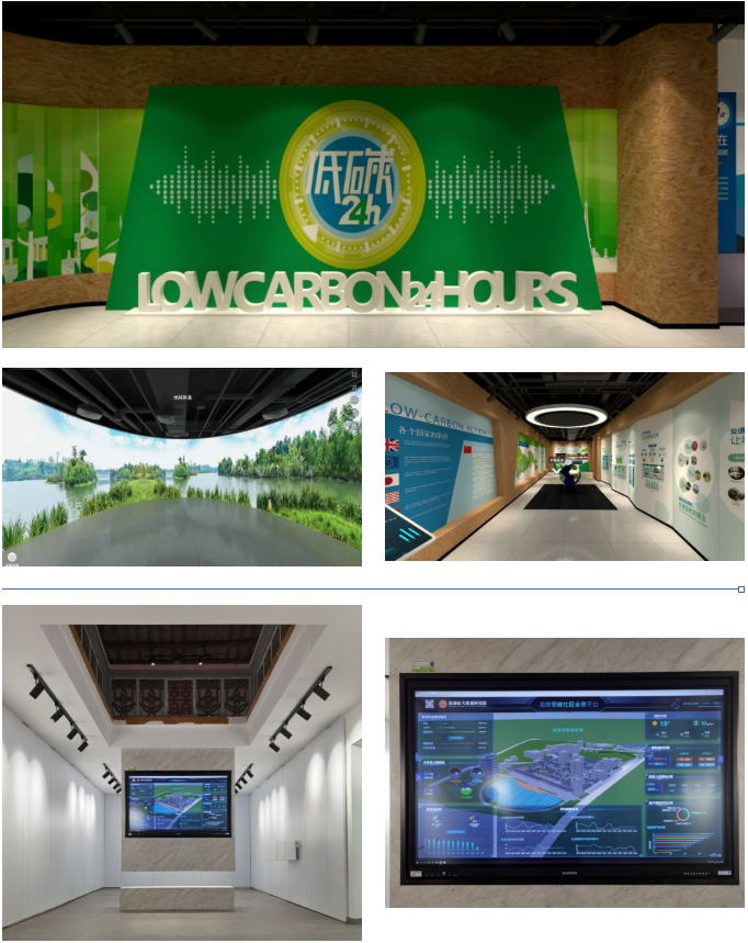 技術(shù)展示場景位于建筑的一樓,劃分為:序廳、綠色建筑技術(shù)、綠色能源、智慧城市、水處理、垃圾處理六大板塊,讓社區(qū)居民認(rèn)識到前沿技術(shù)對于低碳生活帶來的變化。