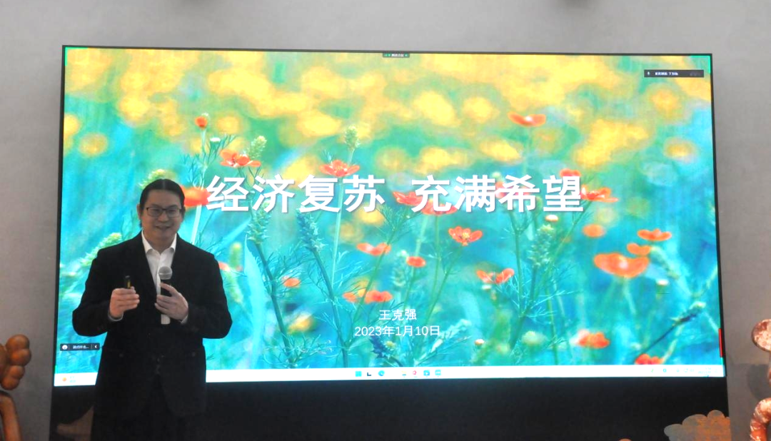本次會(huì)議的承辦方、分會(huì)副會(huì)長(zhǎng)、上海邑通董事長(zhǎng)王克強(qiáng)致辭,他首先對(duì)能夠承辦店裝分會(huì)成立以來(lái)線下的第一次會(huì)長(zhǎng)辦公會(huì)擴(kuò)大會(huì)議表示榮幸和感謝,并以《經(jīng)濟(jì)復(fù)蘇 充滿希望》為主題作了行業(yè)分析報(bào)告,通過(guò)靚麗、多彩的界面?zhèn)鬟f給大家未來(lái)希望和信心。他從消費(fèi)者疫情后消費(fèi)信心的提升、高端化勢(shì)頭的延續(xù)、各線城市實(shí)際的消費(fèi)變化、產(chǎn)品為王、本土企業(yè)正在贏得市場(chǎng)這五方面給大家分析了國(guó)際國(guó)內(nèi)社會(huì)的宏觀環(huán)境和消費(fèi)的趨勢(shì),商業(yè)店裝行業(yè)的發(fā)展未來(lái)可期,點(diǎn)燃了會(huì)員企業(yè)對(duì)未來(lái)發(fā)展的信心和激情。