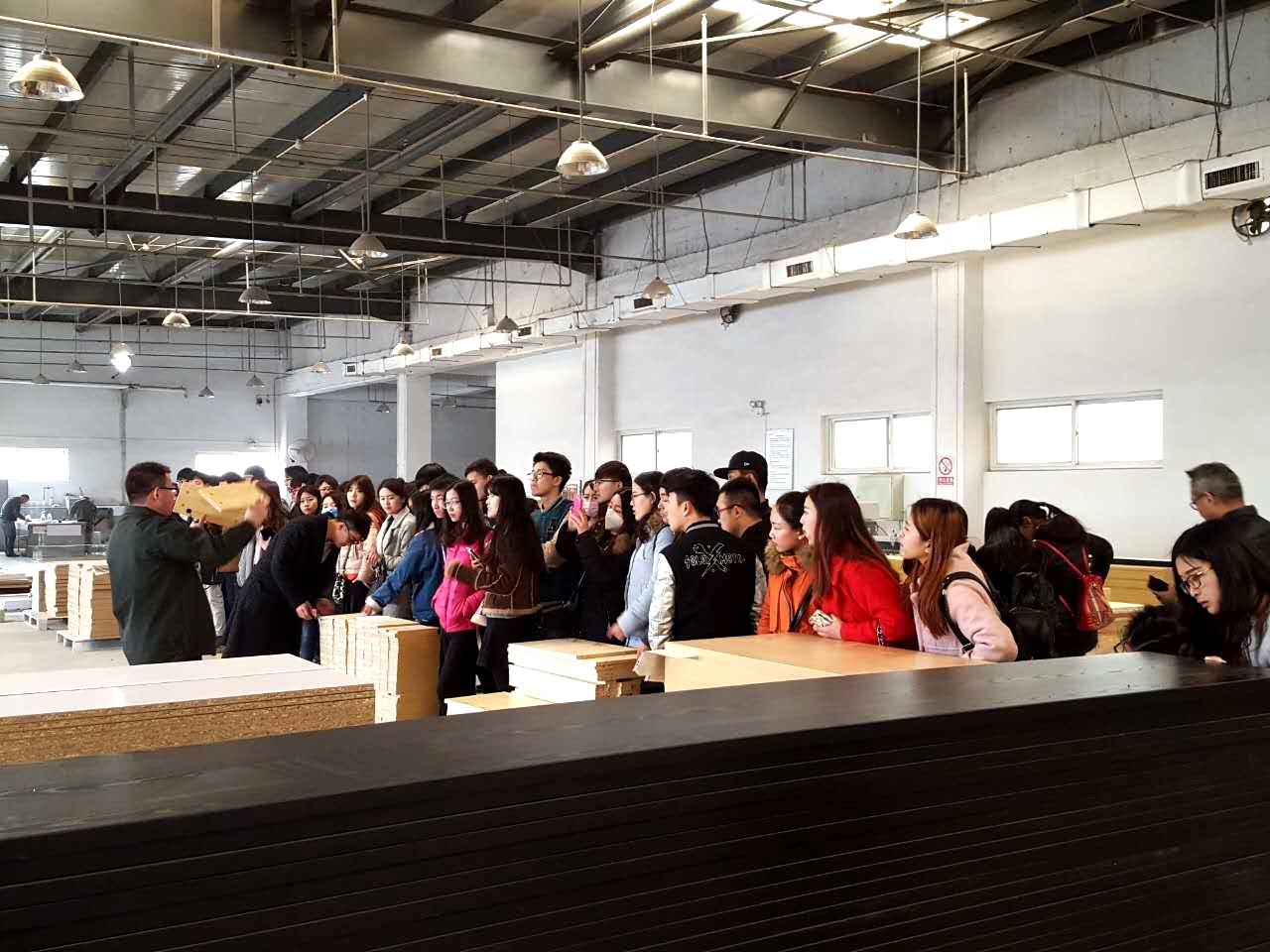 2016年3月8日上午,由河北師范大學(xué)美術(shù)與設(shè)計學(xué)院 車曉光等四位老師帶領(lǐng)的產(chǎn)品設(shè)計專業(yè)共60余名師生到常宏裝飾商業(yè)家具生產(chǎn)基地開展了教學(xué)與實(shí)踐相結(jié)合的參觀學(xué)習(xí)活動。